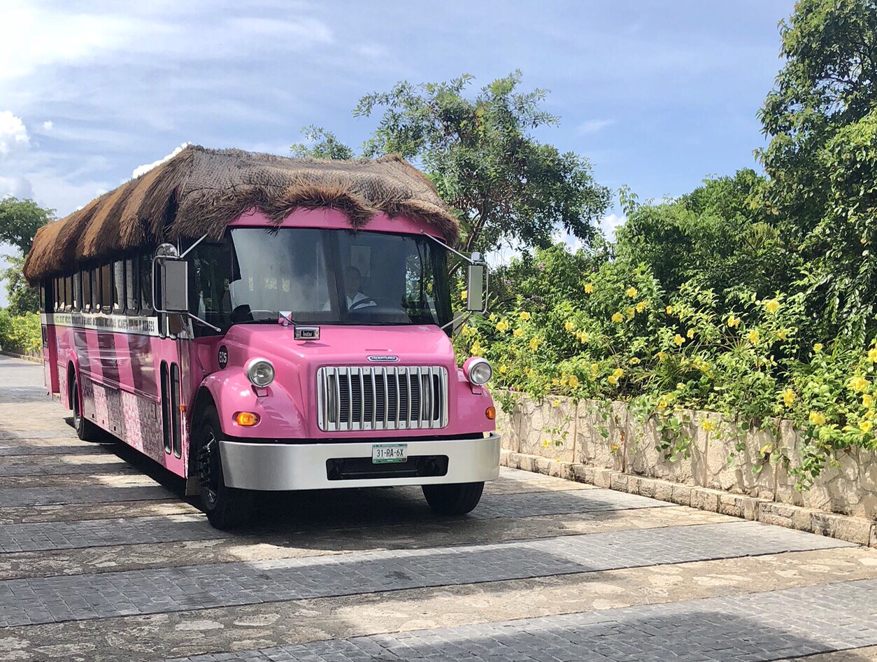 Hotel Xcaret Mexico actually includes a free transfer to and from the airport to the resort. Reservations just need to be made ahead of time, directly with the hotel. You will be greeted by a man or women holding a hot pink sign with the hotel’s logo on it. After you get on the bus you will begin your check-in process. This is nice because you can get to the good stuff quicker once you arrive at the resort. Your guide will give you your all-inclusive bracelet and have you fill out a check-in form. After this they will play a video explaining more about the resort and all the parks / tours they offer. All of their buses also have free WiFi. I know, amazing!