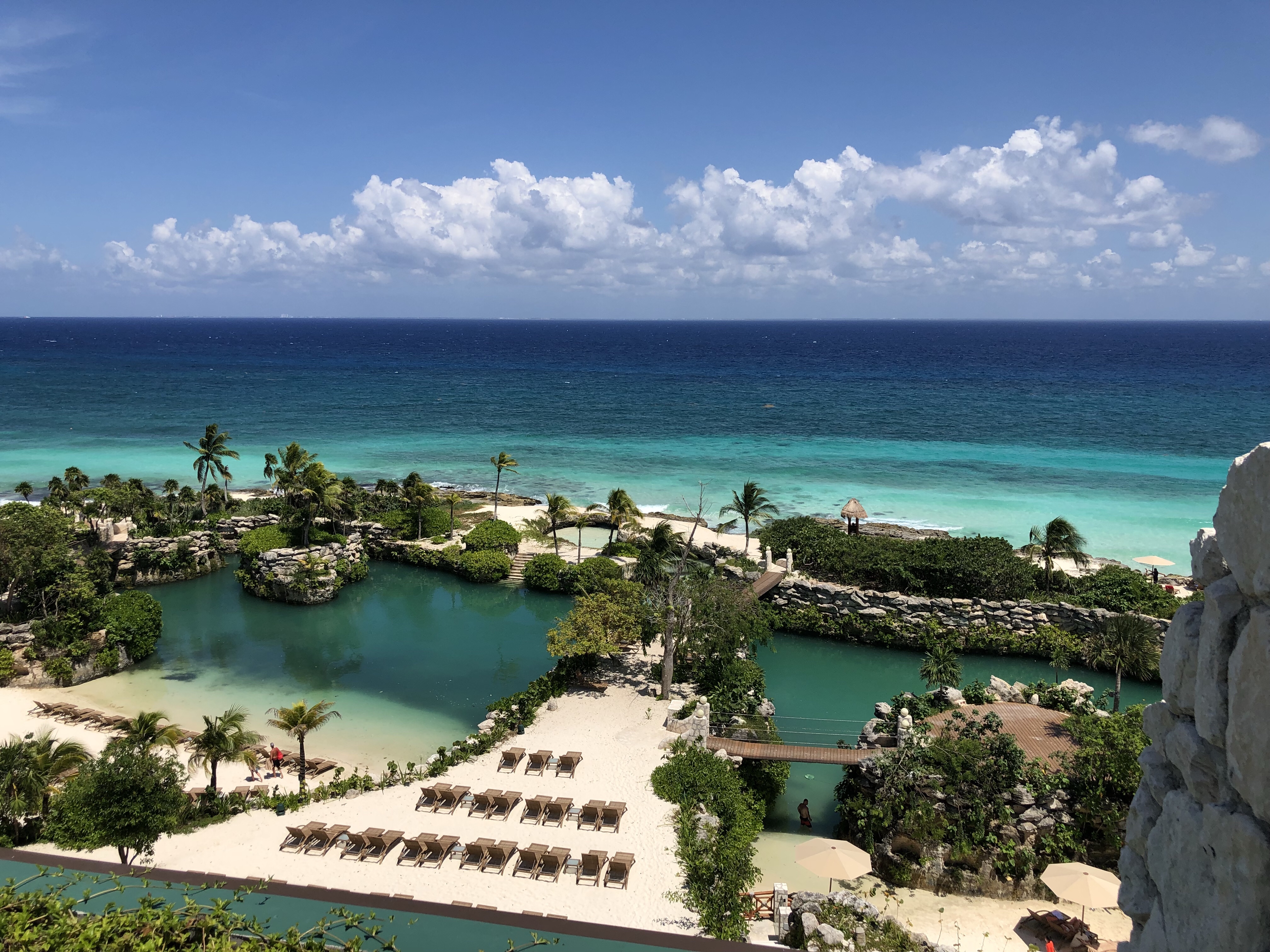 Hotel Xcaret has an array of room types to choose from. They even have an adults-only tower with 2 pools and one restaurant exclusively for guests staying in the Fuego Building. This is the room-type we opted for with an ocean view. We ended up getting a corner suite with a large wrap around balcony and outdoor Jacuzzi! One of the pools in the Fuego building is a rooftop pool, with an unforgettable view of the ocean. You can lounge around and eat lunch here while enjoying a cocktail.