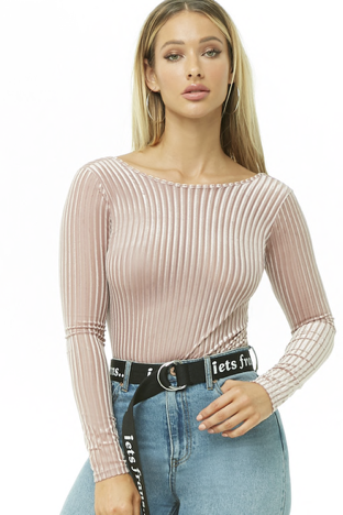 First of all I love this color and the soft pink is perfect for Valentine’s Day. I’m also a fan of the velvet texture and scoop back. This bodysuit is perfect to layer with a fur or teddy jacket! Also comes in olive and brown. On sale right now for only $6!