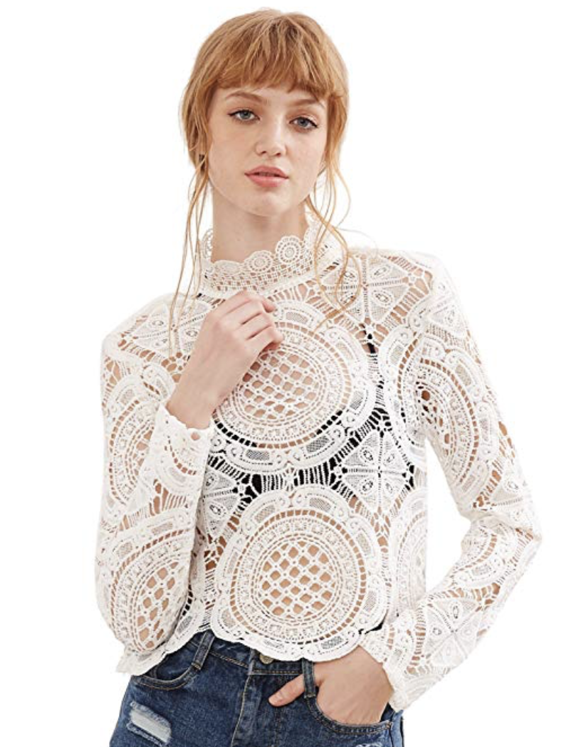 This crochet pattern is absolutely stunning and the mock neck is a great added detail. I’d pair it with some high waisted jeans and some stilettos for a date night or night out with my girls. This top is from Amazon so if you’re super last minute you can still get it on-time with Prime shipping.