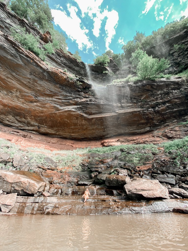 The middle tier was definitely my favorite spot! It has the most impressive views with a taller waterfall than the lower tier. I also loved that I was able to get behind the falls. It was really unique to see the falls from that perspective. If you’re brave enough to do the same, there’s a rocky, steep, dirt path to the left of the falls, that will give you access to behind the waterfall. Just be VERY cautious since it’s mostly dirt and rocks. Again, there are no barriers to keep you from falling.