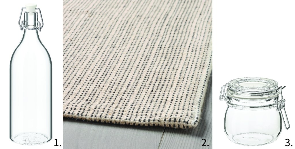 The glassware (bottles/jars) I bought from Ikea and they were very affordable at about $3 each! I made my custom labels using my Cricut Maker (Paint pen on matte black vinyl).