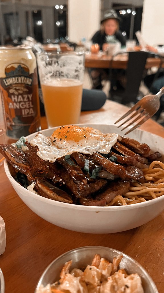Affordable, charming, cozy and unique. I loved the boutique feel and decor with its warm and inviting colors. The rooms have a motel set up with doors on the outside. They are clean, modern/retro and masculine with everything you need. I loved that they included Malin+Goetz products in the room, as well as a tape player. So nostalgic! There’s also a pool, hot tub and sauna. Perfect after a long day of driving or hiking. Also a game room, bar / lounge, a little shop where you can order food, coffee and buy swag from. They even have cottages available if you want a more private experience. It’s a small hotel but they did a great job in offering so much!